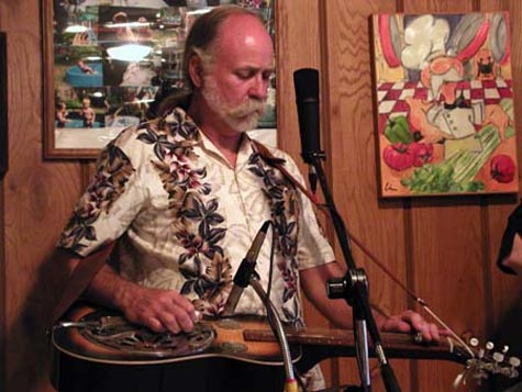 Joe Gierlack-playing his dobro at sponsored poetry reading (for a meal)