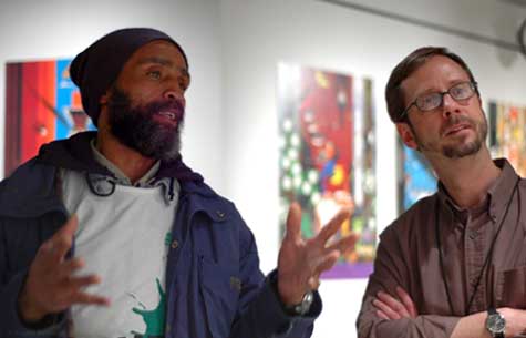 Rico and Scott Boberg (education curator) discussing an artwork in the New Media/New Materials show at the Contemporary Art Center